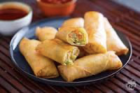 Involtini primavera sono fatti con fogli di riso e verdure stufate e saltate con salsa di soia e aceto di riso in media ogni raviolo contiene 18g CHO.